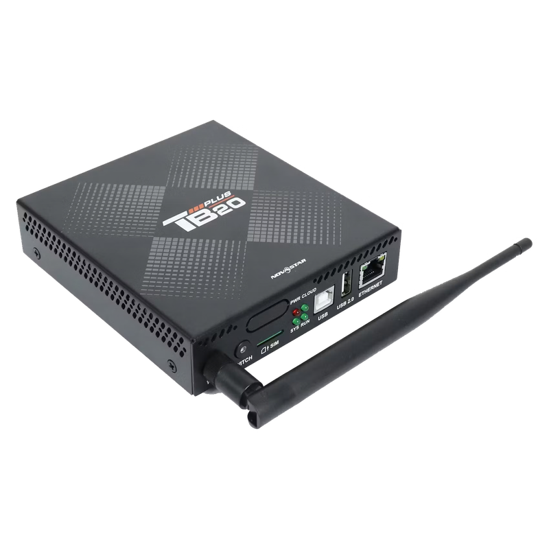 Com suporte a Wi-Fi, rede LAN e modem 4G, a TB20 possibilita gerenciamento remoto do painel de LED através da plataforma ViPlex, ideal para projetos de mídia digital e comunicação visual dinâmica.